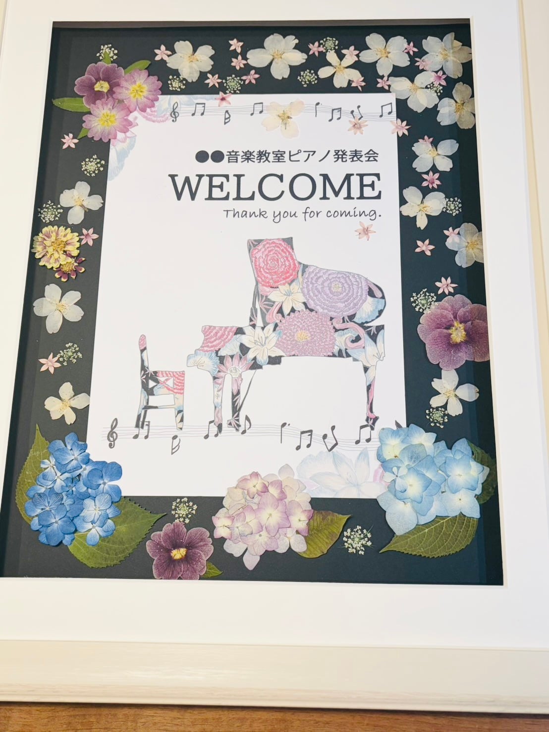 押し花のウェルカムボードです。