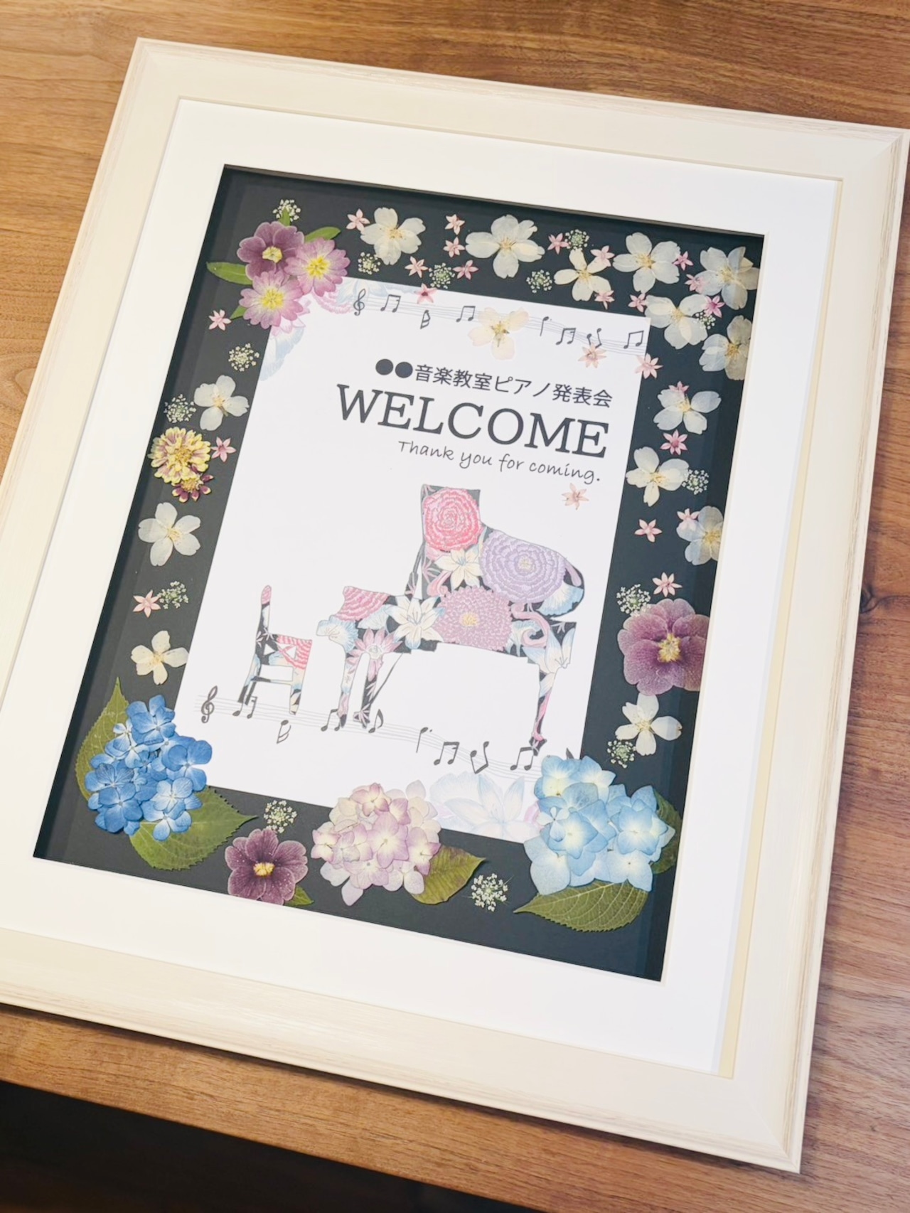 押し花ならではの繊細さと、クラシックな空気感を表しています。