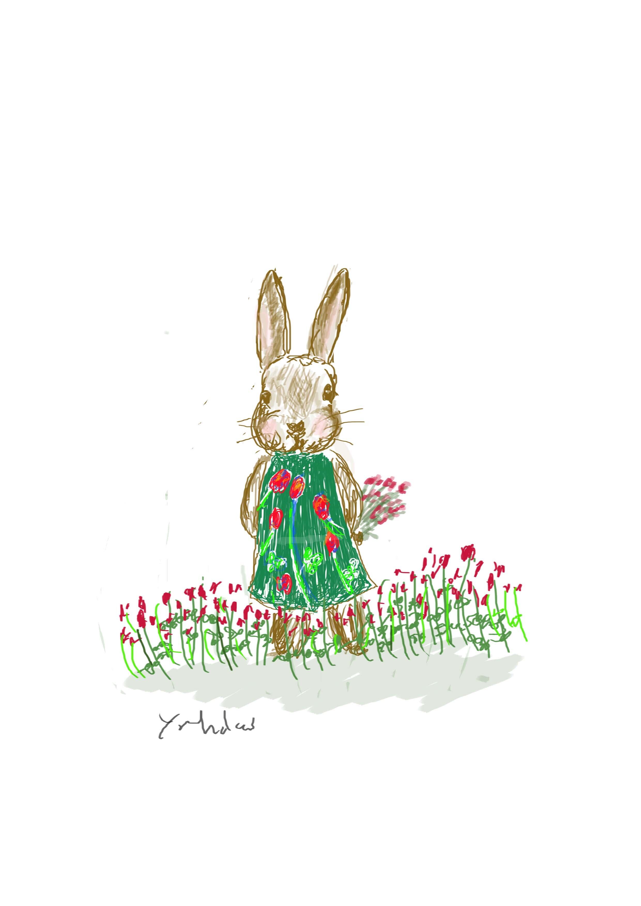 ストロベリーキャンドルの中で楽しむウサギを描きました