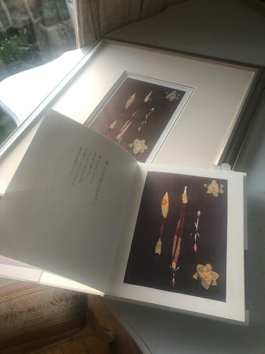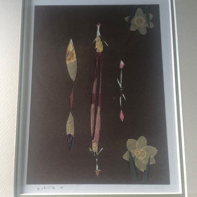 「遠く雪なだれる灰いろのそらと」の押し花原画です。