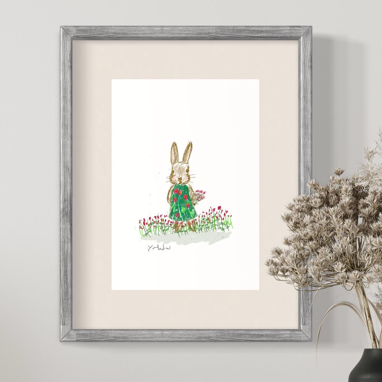 ストロベリーキャンドルの中で楽しむウサギを描きました